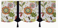 Below are examples of what the valances could look like with either optional buttons or tassels: