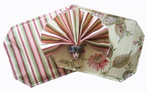 Our fabric napkins are a necessity when entertaining. Give your kitchen, dining room or breakfast nook a decorator look when you get coordinating placemats, fabric napkins, chair cushions and window treatments. Our fabric table napkins are 18" x18". With your choice of 350 fabrics, you are sure to get the look you want.